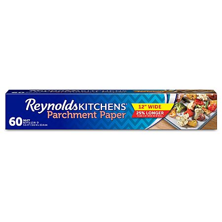 REYNOLDS PARCHMENT PAPER: Includes one roll of Reynolds Kitchens parchment paper, with a measurement of 60 square feet.
