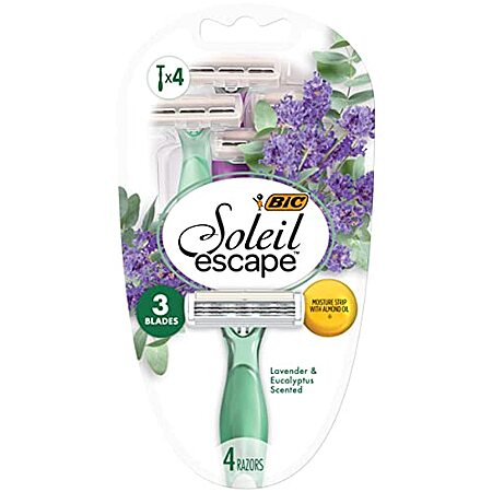 BIC Soleil Escape Women's Disposable Razors, 3 Blade Razor, Moisture Strip With 100% Natural Almond Oil, Lavender and Eucalyptus Scented Handles, 4 Pack Disposable Razors $5.80