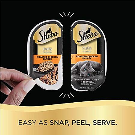 SHEBA PERFECT PORTIONS Cuts in Gravy Adult Wet Cat Food Trays (24 Count (pack of 2), 48 Servings), Roasted Chicken, Gourmet Salmon and Tender Turkey Entrée, Easy Peel Twi - $11.51