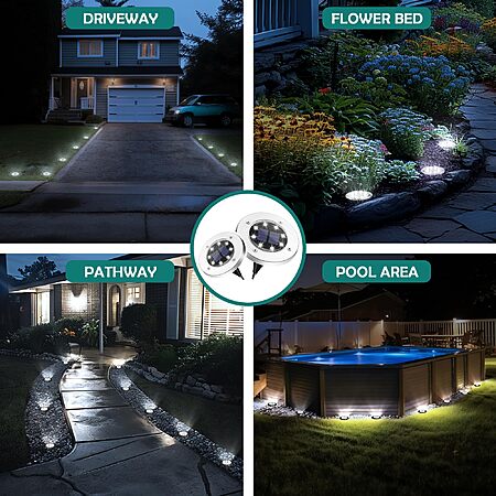 Model: SOLPEX Solar Garden Lights, 8 LED Solar Lights Outdoor Waterproof for Outside Garden Disk Landscape Lighting for Ground Yard Deck Lawn Patio Pathway Walkway (12 Pack, White)