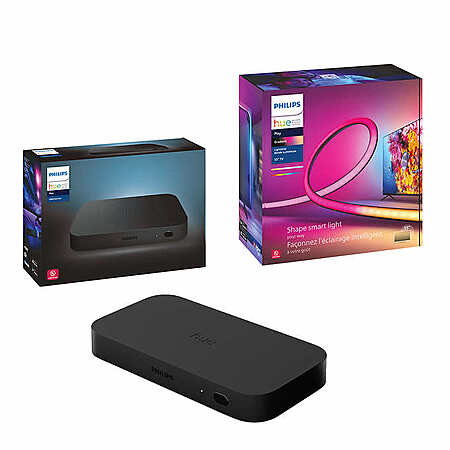 - The Philips Hue Play gradient lightstrip and Sync Box require the Hue Sync mobile app and a Hue Bridge (Sold separately)