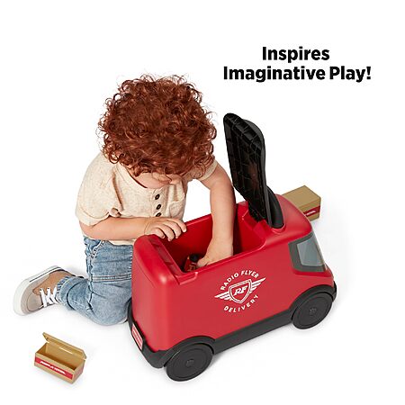 Radio Flyer Delivery Van Toddler Ride On Toy w/ 3 Wooden Package Toys (Red)
