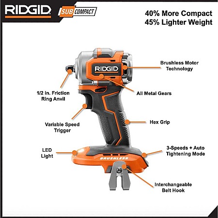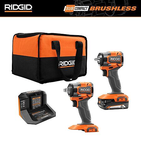 18V Subcompact Brushless Cordless 2-Tool Combo Impact Wrench Kit with 2.0 Ah Battery and Charger $179