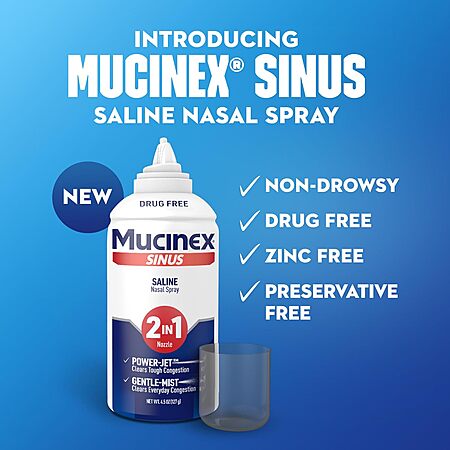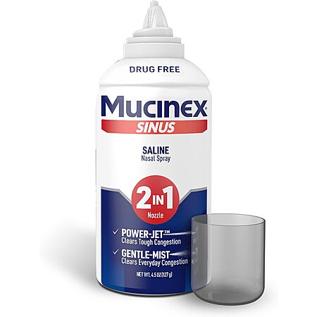 Amazon has 4.5-Oz Mucinex Sinus Saline Nasal Spray & Sinus Rinse + $0.50 Amazon Promotional Credit for $8.99 - 15% when you clip coupon on product page - 5% when you check out via Subscribe & Save = $7.19. Shipping is free w/ Prime or on $35+ orders. Thanks to Deal Hunter PennyFound for finding this deal.