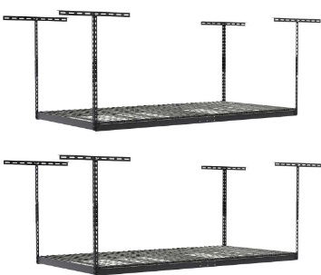 Costco Wholesale has for its Members: 2-Count 4' x 8' SafeRacks Overhead Garage Storage Combo Kit with 18-Piece Deluxe Hook Accessory Pack (Gray or White, Various Drop Down Ranges) on sale for $369.99 - $100 savings = $269.99. Shipping is free.