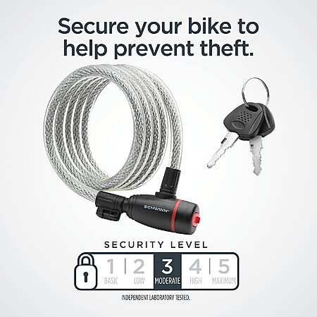 6' Schwinn Braided Steel Cable Anti Theft Bike Key Lock (Security Level 3)