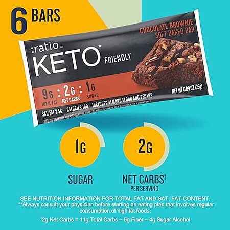 6-Count :ratio KETO Friendly Soft Baked Bars (Chocolate Brownie) for $6.99 -