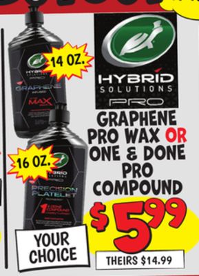 YMMV, Ollie's Bargain Outlet in store, 14 oz Turtle Wax Hybrid Solutions Pro Graphene Wax or 16 oz One and Done Pro Compound, $5.99
