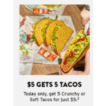Taco Bell Rewards In-App Offer: 5-Count Crunchy or Soft Tacos