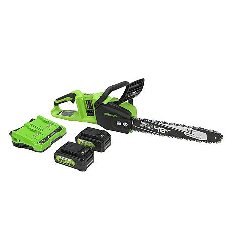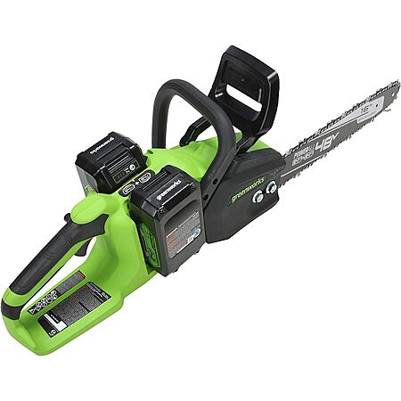 Greenworks 48V (2 x 24V) 16" Brushless Cordless Chainsaw (Great For Tree Felling, Limbing, Pruning, and Firewood / 125+ Compatible Tools), (2) 4.0Ah Batteries and Dual Po - $153.92