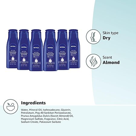 6-Pack 2.5-Oz Nivea Essentially Enriched Body Lotion $4.14 ($0.69 Each) + Free Shipping w/ Prime or on $35+
