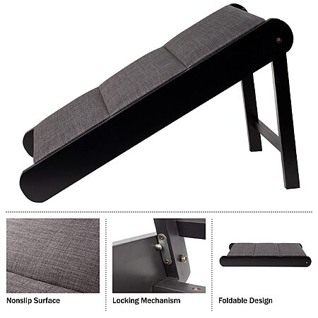 18" PETMAKER Foldable Wooden Dog Ramp for Small Pets (Black/Gray, PET6238) on sale for