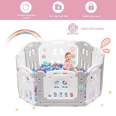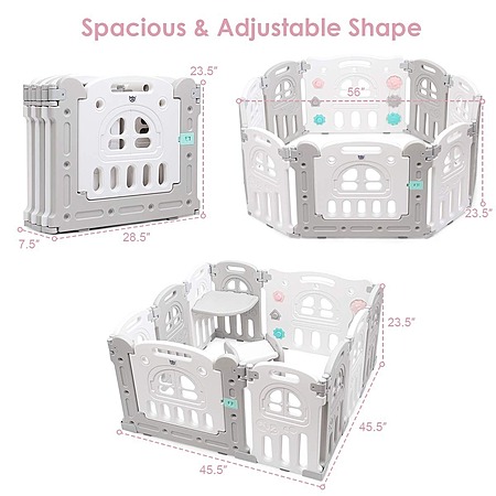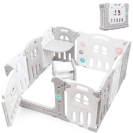 10-Panel Foldable Kids Playpen w/ Table & Stool (Gray & White) $60.80 + Free Shipping