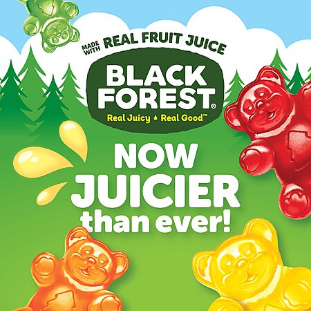 • Black Forest Gummy Bears are the perfect treat or snack to satisfy your cravings. This 5 pound bag of gummy bears comes in 6 deliciously juicy flavors: Cherry, Lemon, Pineapple, Orange, Apple and Strawberry. Black Forest Gummy Bears are made with flavors and colors from real sources for you to enjoy. These soft and juicy gummy bears are great to keep on hand in the pantry for everything from family movie night to a sweet treat just for you. Crafted with care, our gummy bears are love at first bite.