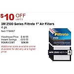 Costco In-Warehouse Offer: 4-Pack 3M 2500 Series Filtrete 1" MERV 14 Filters