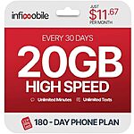 6-Month Infimobile Prepaid Unlimited Talk/Text/20GB 5G/4G Data Plan Sim Card for $70 - 20%