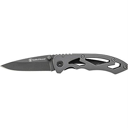 Model: Smith & Wesson CK400 5.4in High Carbon S.S. Folding Knife with a 2.2in Drop Point Blade and Stainless Steel Handle for Outdoor, Tactical, Survival and EDC