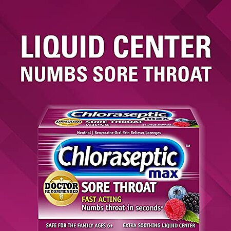 3-Pack 15-Count Chloraseptic Max Strength Sore Throat Lozenges (Wild Berries) for $8.84 -