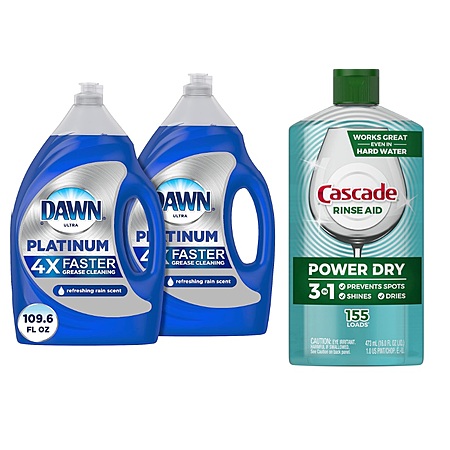 2-Pack 54.8-Oz Dawn Platinum Dish Soap Liquid + 16-Oz Cascade Power Dry Dishwasher Rinse Aid $19.77 w/ S&S + Free Shipping w/ Prime or on $35+