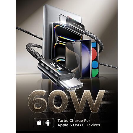 https://www.amazon.com/gp/product/B0CFQ5T5F6/- 【60W Turbo Fast Charging】This usb c to usb c cable iphone 15 pro support PD3.0/QC3.0/QC4.0 fast charging up to 60W Max (20V/3A) with USB-C Power Delivery adapters such as 30W/45W/60W. Which 2.2X faster than 3.1A version and charges USB C Phone from 0% to 80% within 35 minutes, iPad Pro 64% within 35 minutes, Macbook air 50% within 35 minutes, and data transfer speeds up to 480Mbps (1200 songs synced per minute) compatible with Samsung,Tablt,iPad Air Mini Pro,Macbook and More.