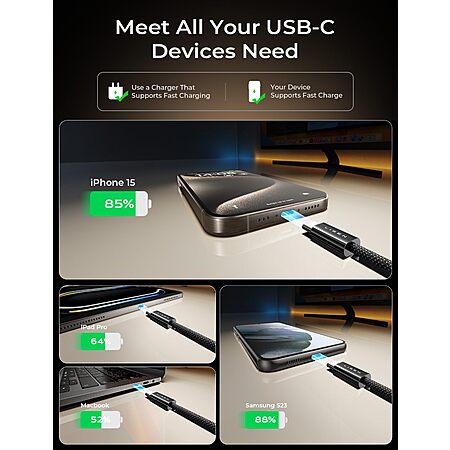 - 【Right for ALL Your Devices】This is the USB-C to USB-C cable Not the USB-C to USB-A cable, Compatible with virtually all USB-C devices including phones, tablets, and laptops. Such as Samsung Galaxy S23/S22/S21+/S21/S20/ S20+/ S20 Ultra/ Note 10, MacBook Air/Pro 13'', iPad Mini 6, iPad Pro 2021/2020/2018, iPad Air 2020 and more.
