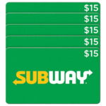 Costco Members: 5-Pack $15 Subway Restaurant eGift Cards ($75 Value)