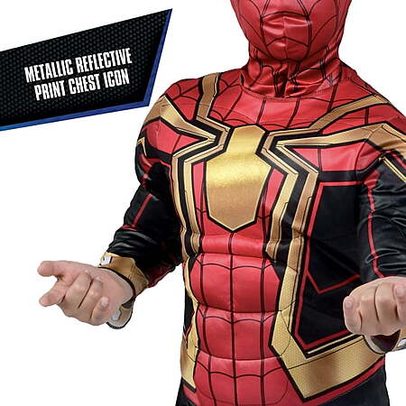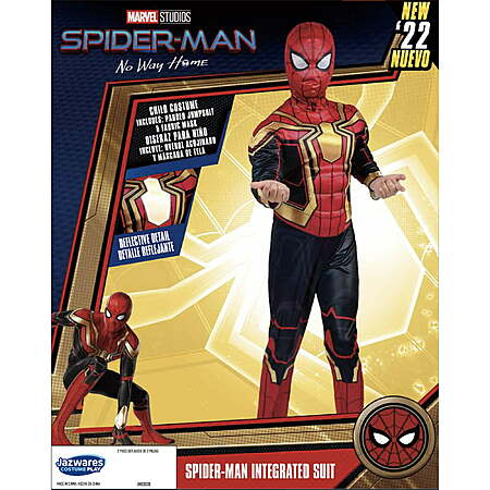 Styles are chosen based on availability when using Store Pick Up or Ship from Store. Swing your way home with the Spider-Man Integrated Suit Youth Costume. Full-bodied jumpsuit is cut from poly jersey and stuffed with polyfill. Features Spidey's unique spider symbol on the costume's chest and back. Also includes a fabric mask with white mesh overlay around the eyes. Collect this costume and look out for more Marvel costumes from Jazwares Collect this Spider-Man Integrated Suit Youth Costume and take on any and every foe. Officially licensed by Marvel. Ages 8+