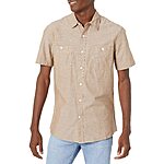 Model: Amazon Essentials Men's Short-Sleeve Chambray Shirt, Tan, Small