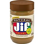 12-Pack 16-Oz Jif Peanut Butter (Extra Crunchy or Natural Creamy) for