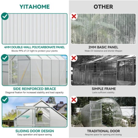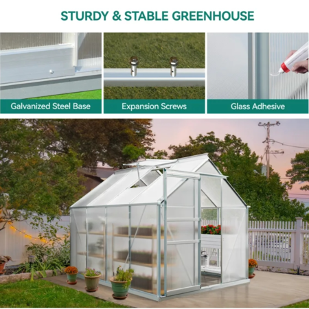 8' x 6' Yitahome Walk-In Polycarbonate Greenhouse w/ Sliding Door & Roof Vents (Silver) on sale for