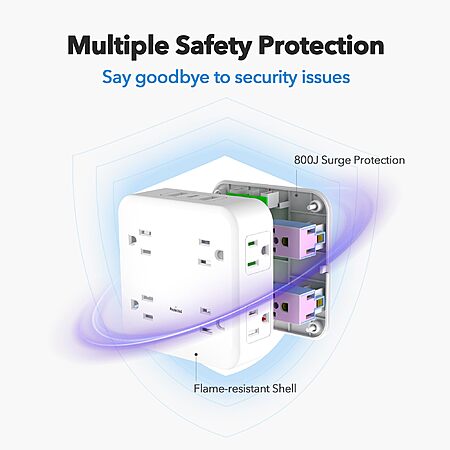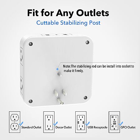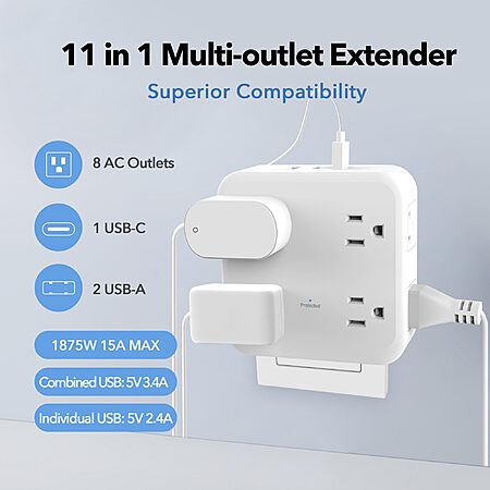 BN-LINK 3-Sided Multi Plug Outlet Extender w/ 8 Outlets 3 USB Wall Charger(1 USB C) & Surge Protector 800 Joules (15A/1875W, White) $8 + Free Shipping w/ Prime or on $35+