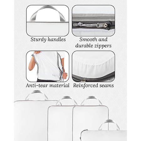Model: Compression Packing Cubes for Suitcases, OlarHike 4 Set/6 Set Travel Essentials, Lightweight Luggage Travel Organizer Bags, Expandable Travel Cubes for Carry-on Suitcases (White)