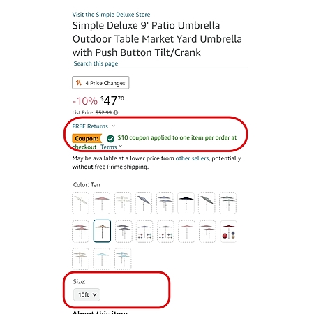Simple Deluxe 10' Patio Umbrella Outdoor Table Market Yard Umbrella with Push Button Tilt/Crank $38 @ Amazon