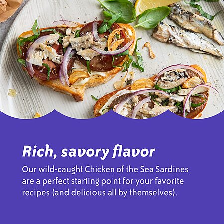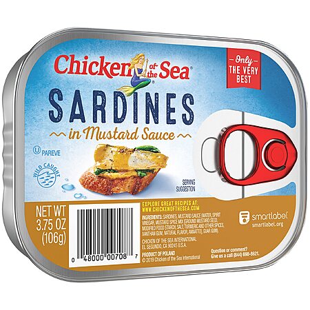 RICH, SAVORY FLAVOR: Chicken of the Sea Sardines in Mustard Sauce combine wild-caught sardines with a little piquant mustard which enhances the flavor of the sardines—perfect for a delicious snack.