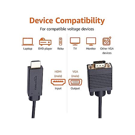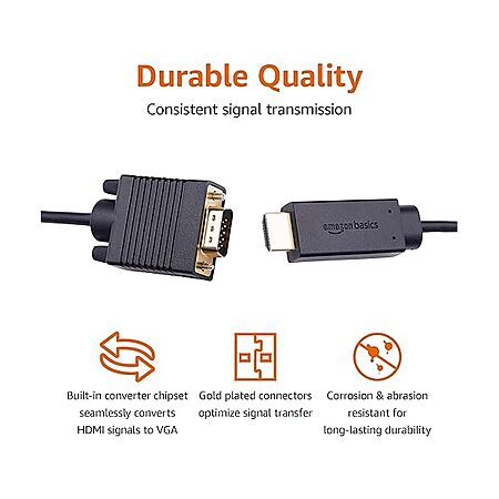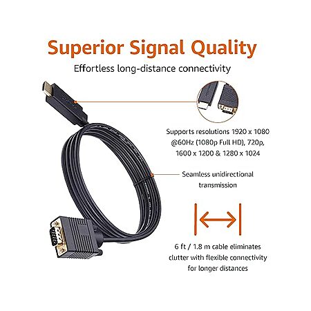 AmazonBasics 6' Gold-Plated HDMI Source to VGA Display Cable (NOT Bidirectional) for