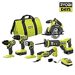 6-Tool Ryobi ONE+ 18V Cordless Combo Kit with 2 Batteries (1.5 Ah / 4.0 Ah)