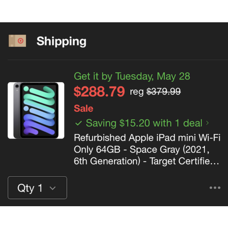 Apple iPad mini Wi-Fi Only 64GB - Space Gray (2021, 6th Generation) - Target Certified Refurbished $288.79 w/Target Circle Card