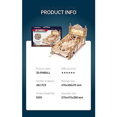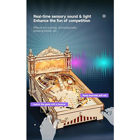 ROBOTIME Pinball Machince EG01 - Wooden Puzzles for Adults Miniature Pinball 3D Puzzle $50 off offered to select accounts