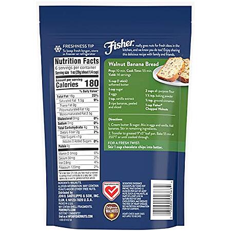 Model: Fisher Chopped Walnuts, 6 Ounces, California Grown Walnuts, Unsalted, Naturally Gluten Free, No Preservatives, Non-GMO