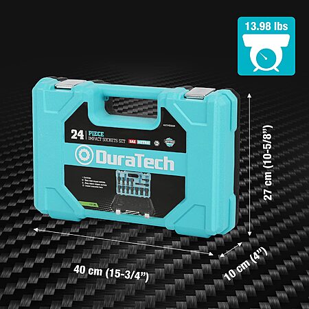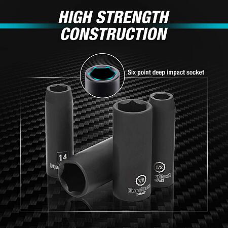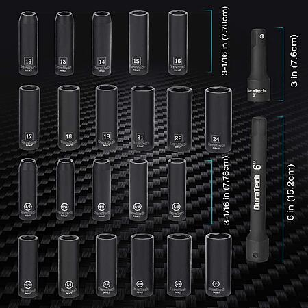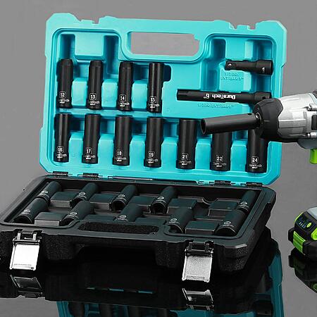 24-Piece DURATECH 1/2" Drive Deep Impact Socket Set with 2-Pc 1/2" Hexagon Extension Bars (Metric & SAE) on sale for
