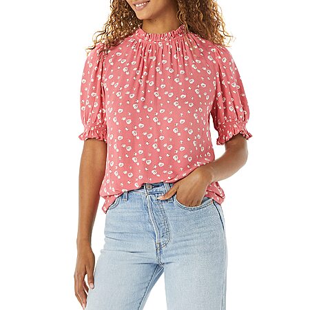 Amazon Essentials Women's Fluid Twill Short Puff Sleeve Smock Detail Shirt (Various) $7.70 + Shipping is free w/ Prime or on 35+
