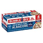 4-Pack 5-Oz Bumble Bee Solid White Albacore Tuna in Water $4.75 w/ S&S+ Free Shipping w/ Prime or on $35+