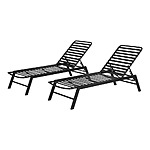 2-Pack Hampton Bay Adjustable Outdoor Strap Chaise Lounge with Aluminum Frame (Black) for