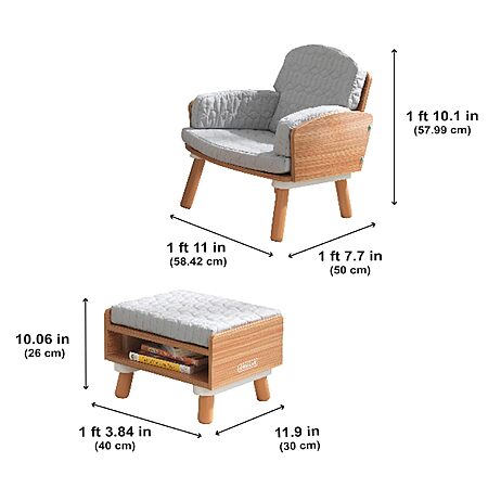 Model: KidKraft Mid-Century Kid Upholstered Reading Chair & Ottoman with Storage, Furniture for Kids, Gift for Ages 3-6 , Grey