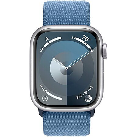 Model: Apple Watch Series 9 GPS 41mm Silver Aluminum Case with Winter Blue Sport Loop with Blood Oxygen App