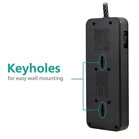 Model: Philips Accessories EZFit 6-Outlet Surge Protector Power Strip, 8 Ft Braided Extension Cord, Widely Spaced Outlets, 1080 Joules, Flat Plug, for Home Office Dorm Essentials, Black, SPC6066BB/37