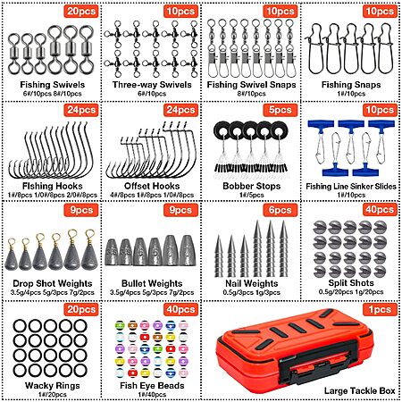 - Variety and number of accessories allow you to combine your own fishing rig: Neko rig, Texas rig, Carolina rig, Wacky rig, Drop shot rig, 3 Way swivel rig, Fish finder rig, Double hook bottom rig