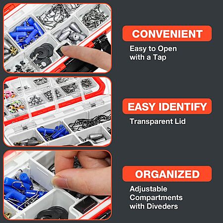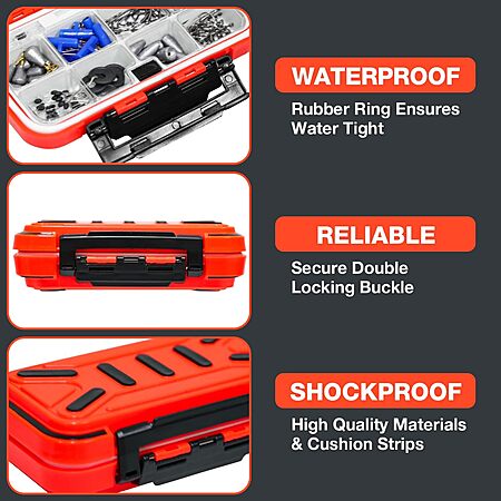 - Tackle box made of very strong engineering plastic to withstand impact, has non-slip pads to reduce vibration, a sealing rubber ring for a watertight capability, and has customizable dividers
