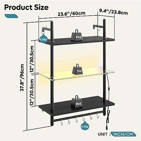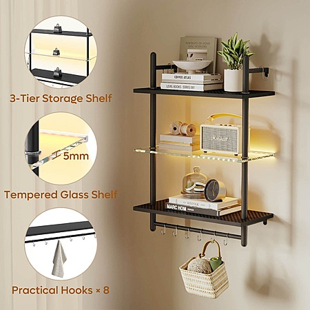 Bestier Gaming Floating Shelves 23” LED Wall-Mounted Shelf with Towel Bar $29.99 + Free Shipping w/ Prime or $35+