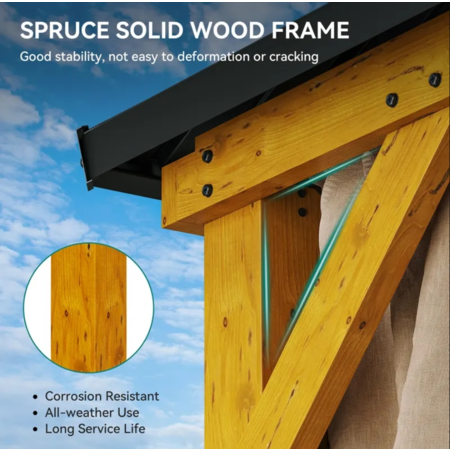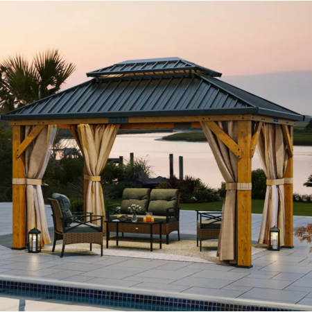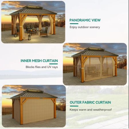 11' x 13' Yitahome K20 Wooden Frame Gazebo w/ Double Galvanized Steel Top